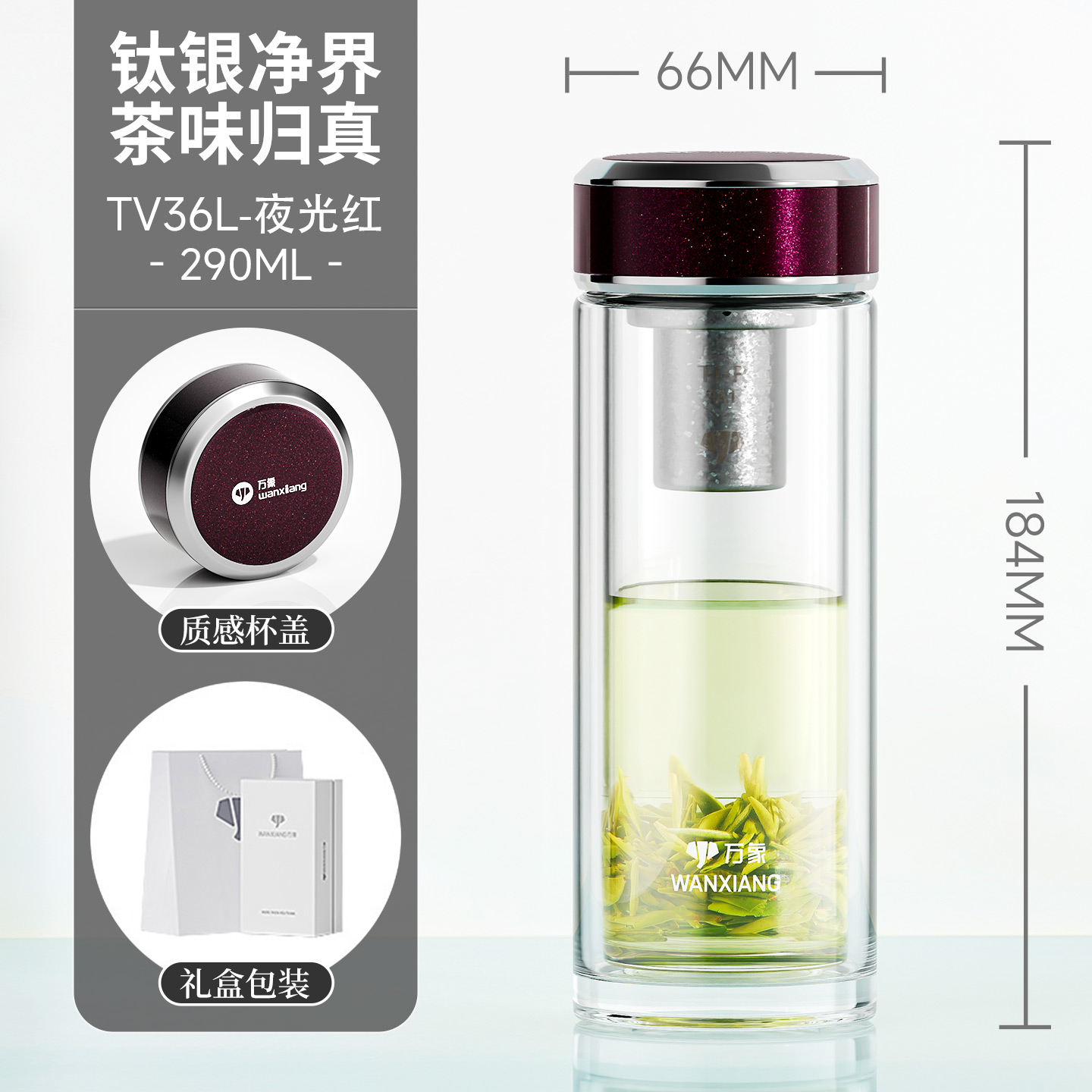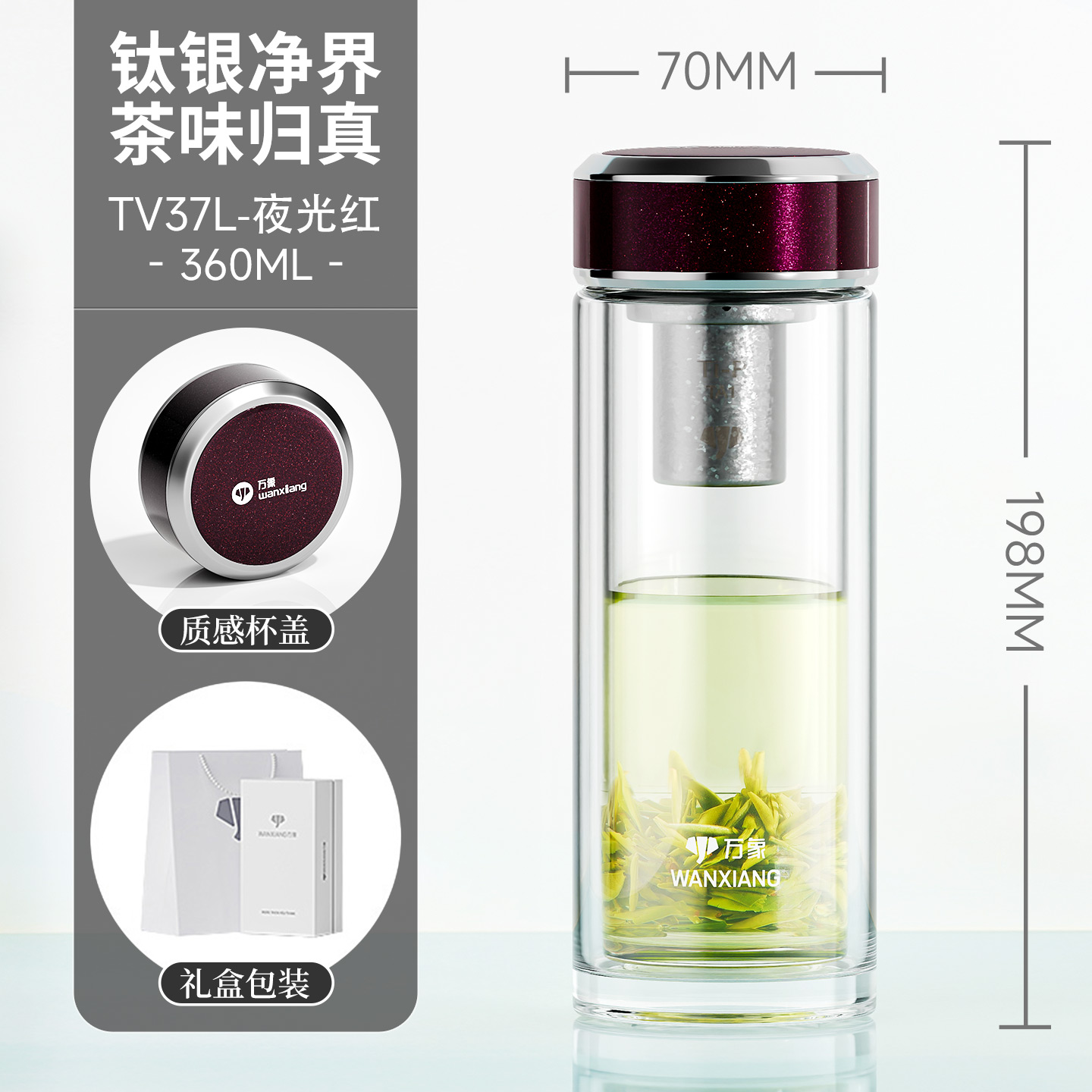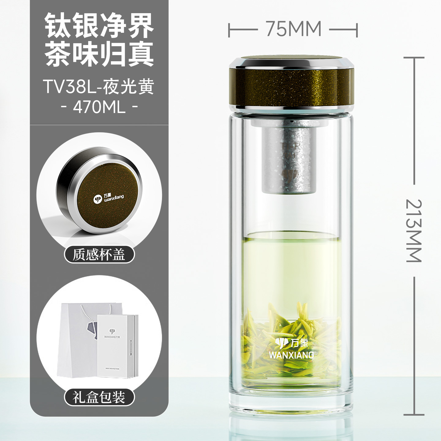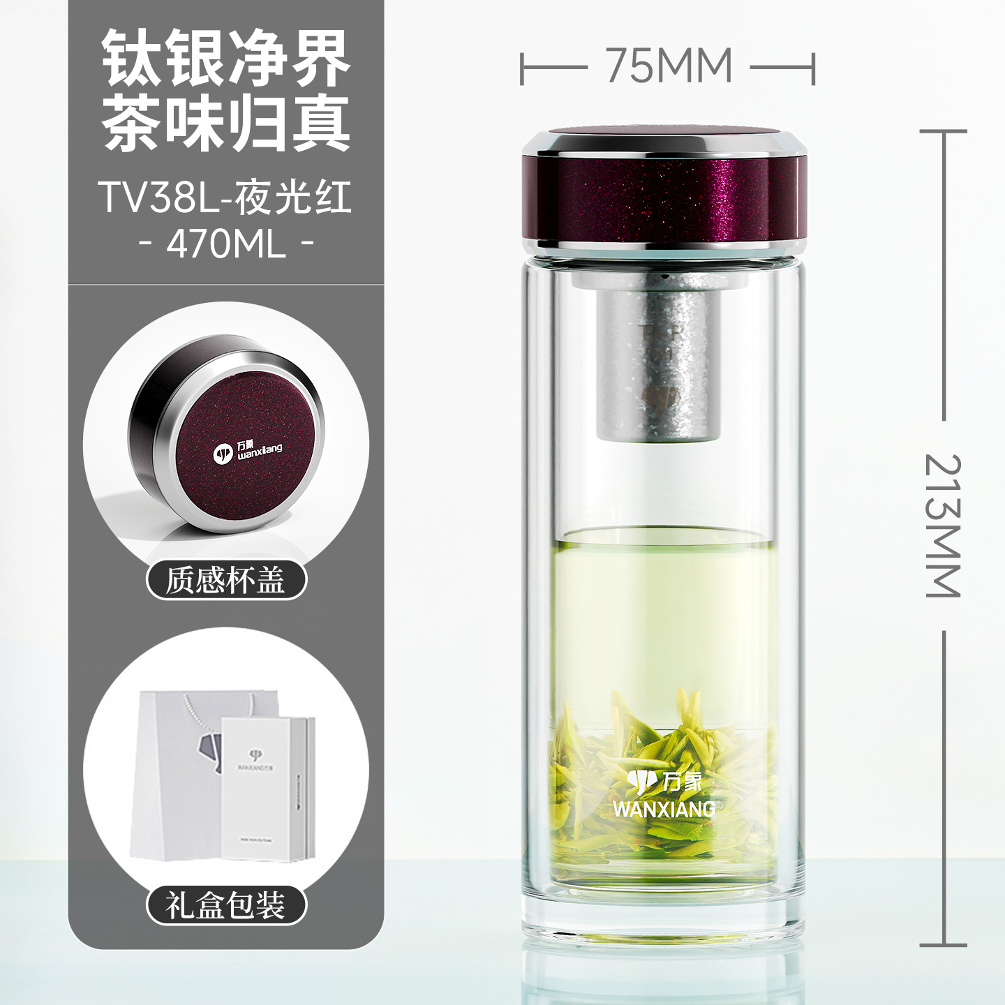 萬象鈦銀抗菌雙層玻璃杯 型號TV35L-¥563 型號TV36L-¥600 型號TV37L-¥638 型號TV38L-¥675